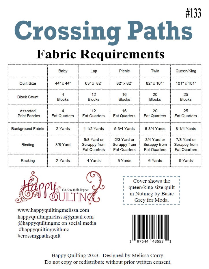Crossing Paths Quilt Pattern by Melissa Corry of Happy Quilting - Paper Pattern